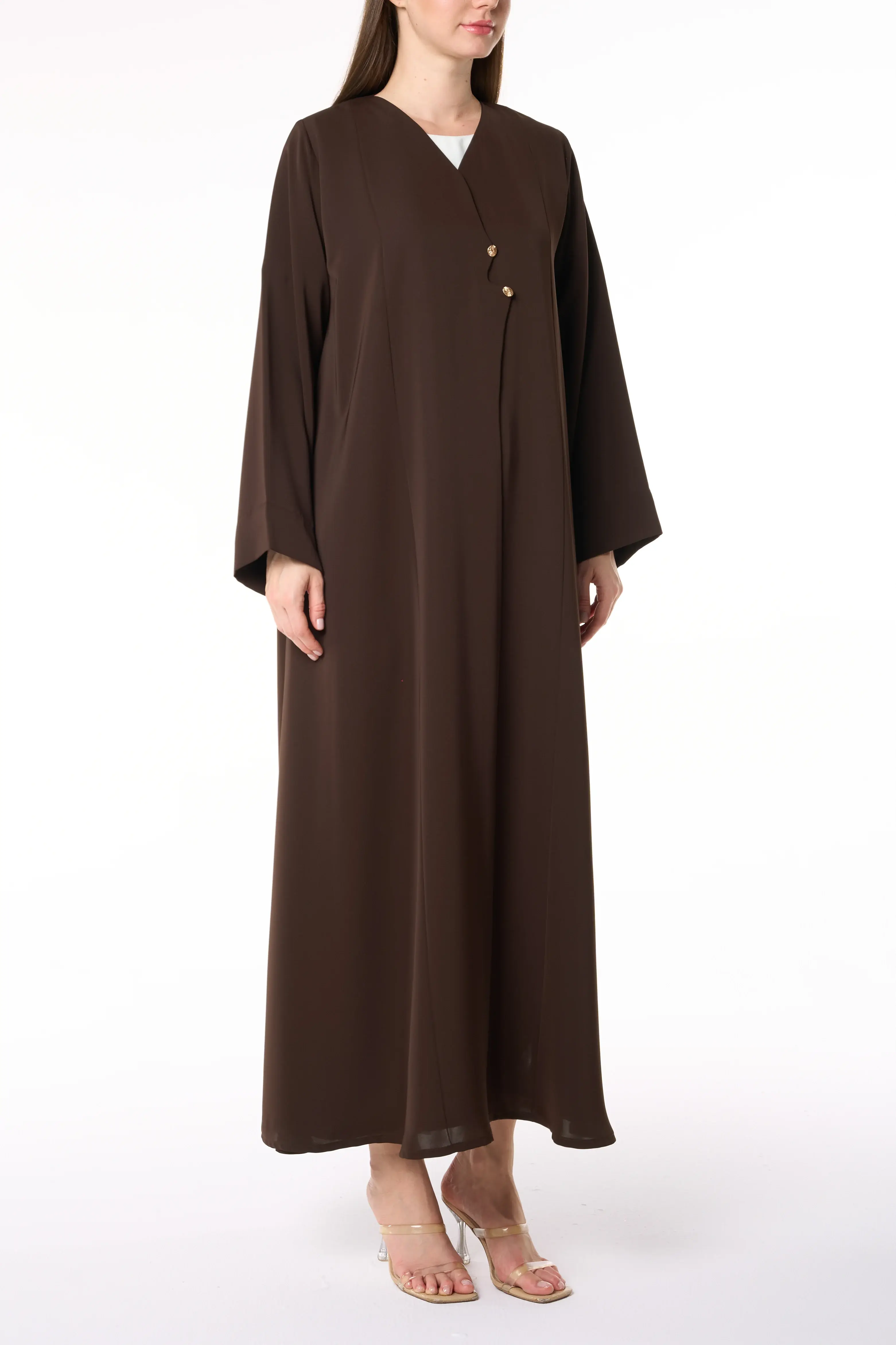 Brown Reem Nada Abaya with Golden Accent Buttons